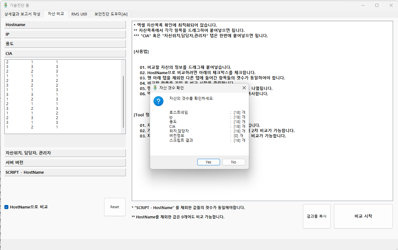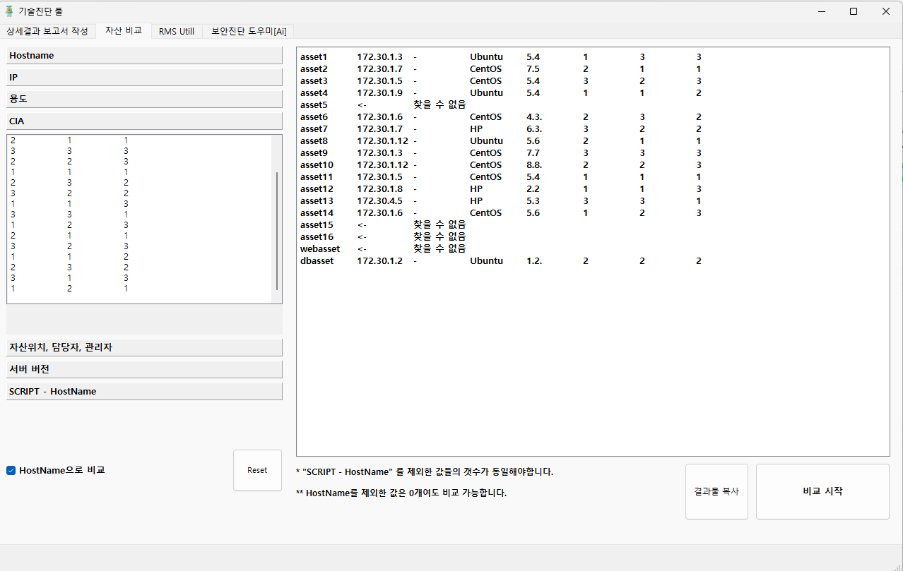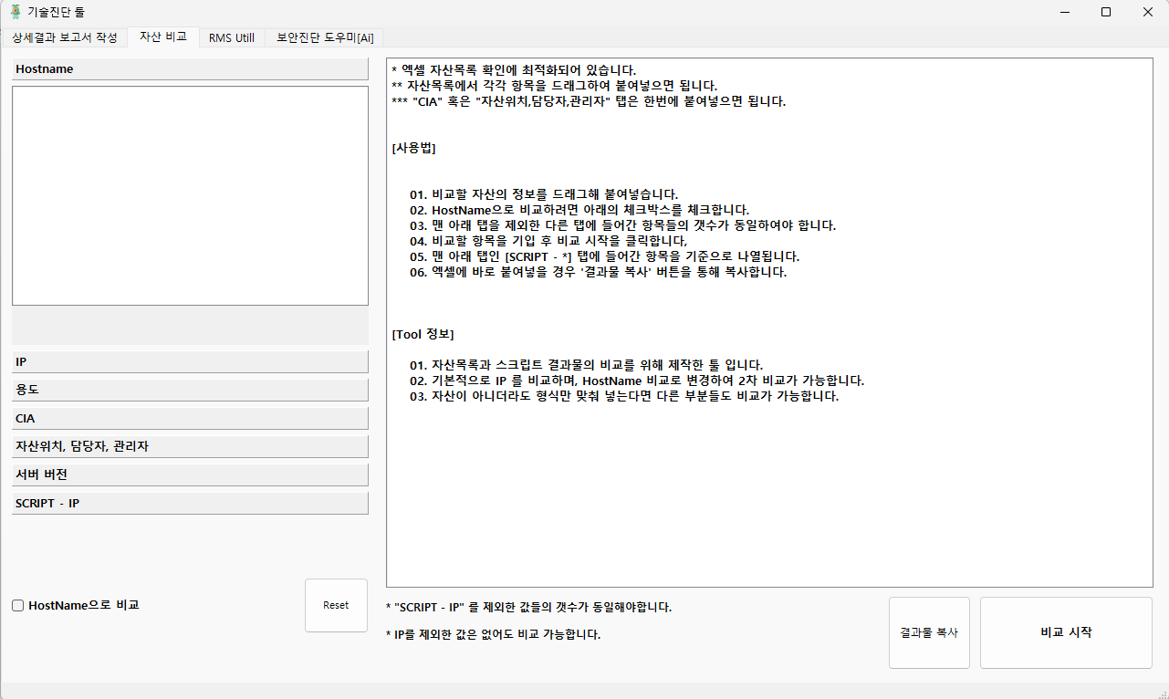 두번째 탭은, 자산 진단을 하다보면 회사 자산의 수정 여부를 파악하는데 시간이 너무 많이 들어서 만든 툴이다.