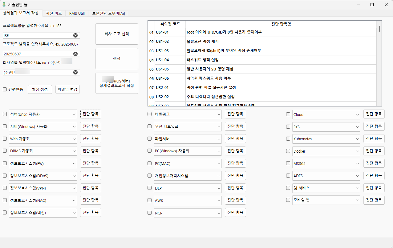 1.진단 체크리스트(엑셀) 생성 기능