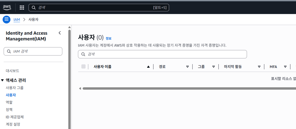 1. IAM 서비스로 진입하여 사용자 목록을 확인
