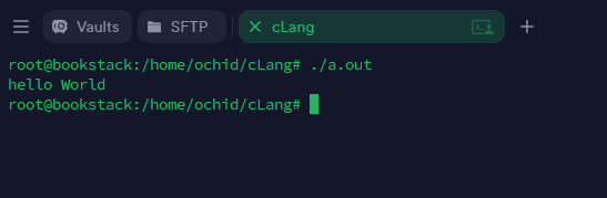 명령어를 통해 현재 디랙터리의 a.out 파일을 실행하면 정상적으로 hello world가 출력됨을 확인할 수 있다.