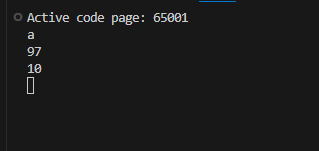 a 는 ascii에서 97 이고 ascii에서 10은 개행이다. Enter 키가 10으로 출력됐다고 보면 된다.