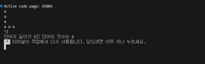 printf("단어의 길이가 1인 단어의 갯수는 %d\n", ndigit[1]);
