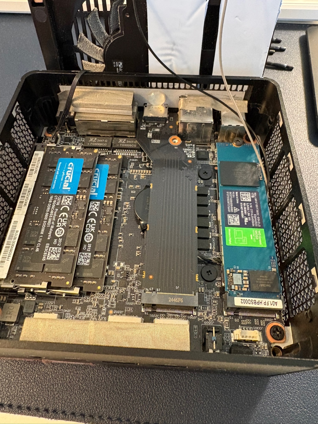 뒷쪽 환풍구쪽에 혼자 뚫려있는 곳이 오큐링크 포트인데 해당 포트를 사용하려면 ssd 독 하나를 포기해야한다. (원래 하나만 사용 중이였어서 뭐..)