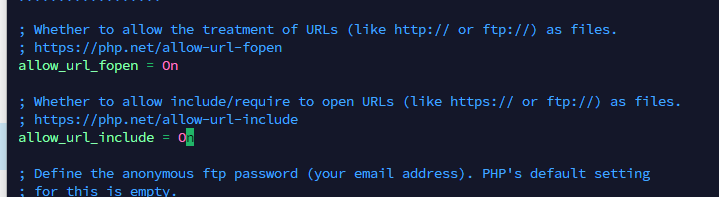 LFI 를 시연할 때 php.ini 파일의 allow_url_fopen 설정은 기본적으로 활성화가 되어있지만
